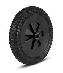 Pneu fabricado em PVC expandido. Não possui câmara de ar, não murcha e nem fura.