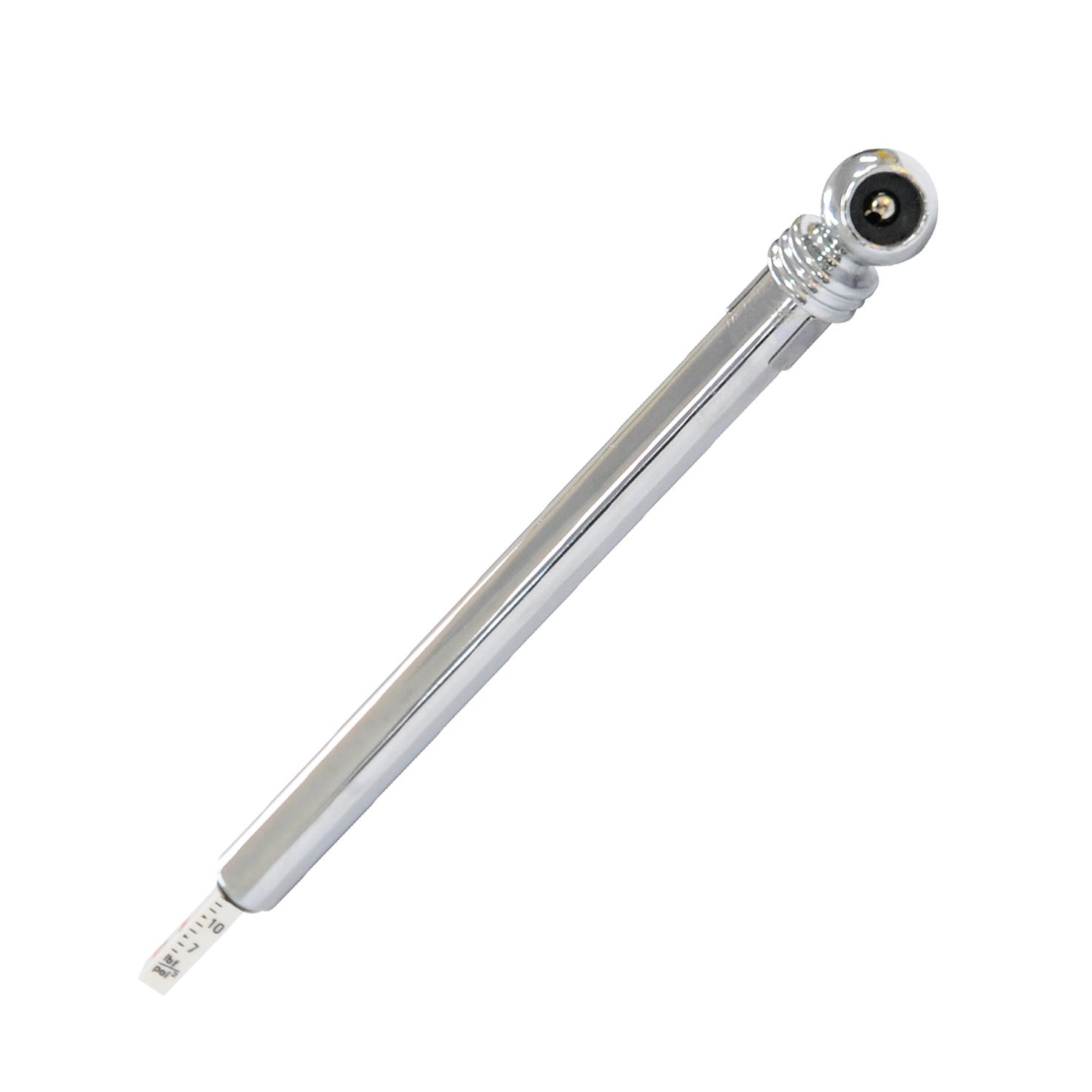 Calibrador com corpo em metal cromado, com clipe para bolso, faz leitura em várias posições.