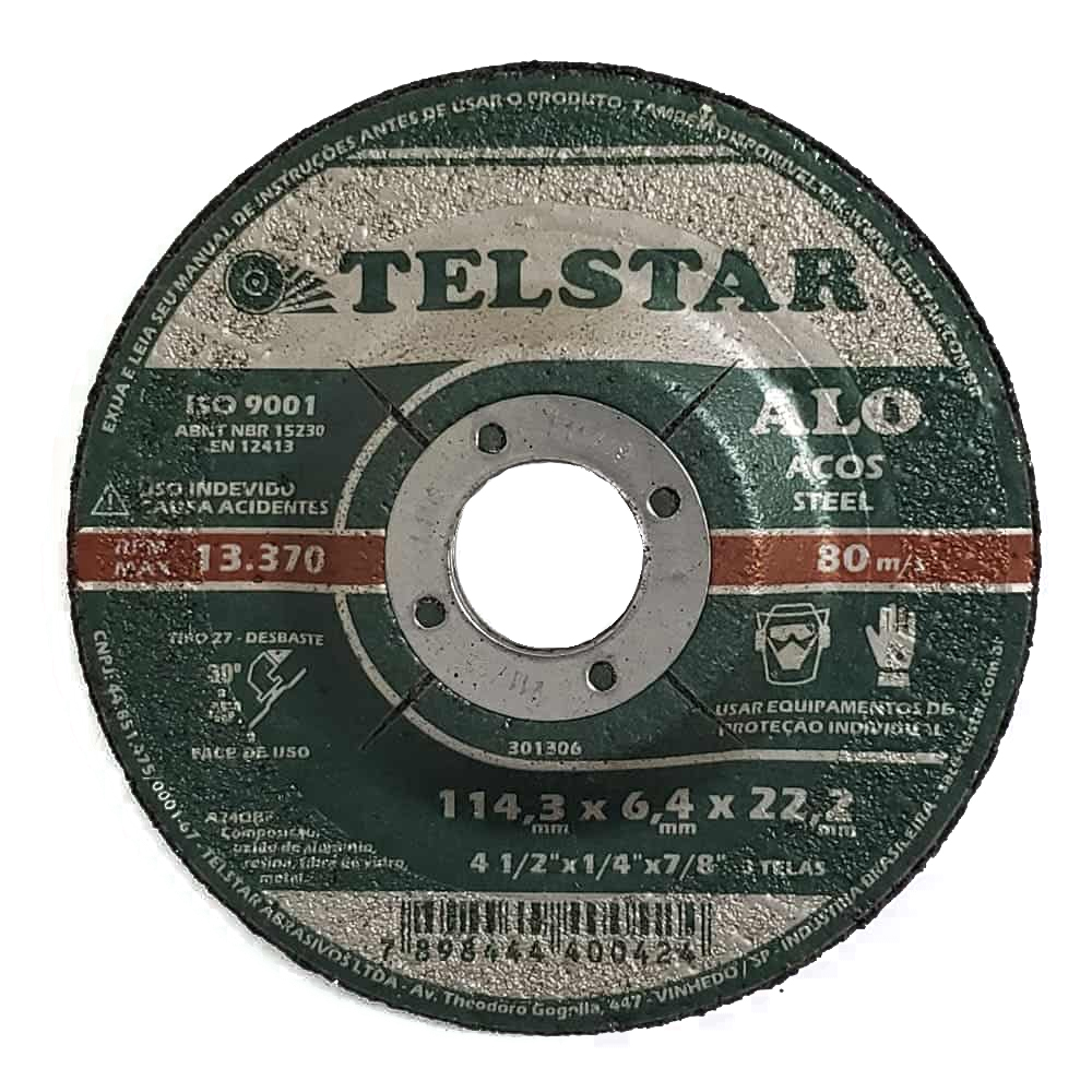 O Disco de Desbaste 4.1/2" 3T da TELSTAR é projetado para trabalhos de desbaste em diversos tipos de superfícies, como metais, aço e ferro. Com dimensões de 114,3mm de diâmetro, 6,4mm de espessura e um furo central de 22,2mm, é compatível com esmerilhadeiras angulares.