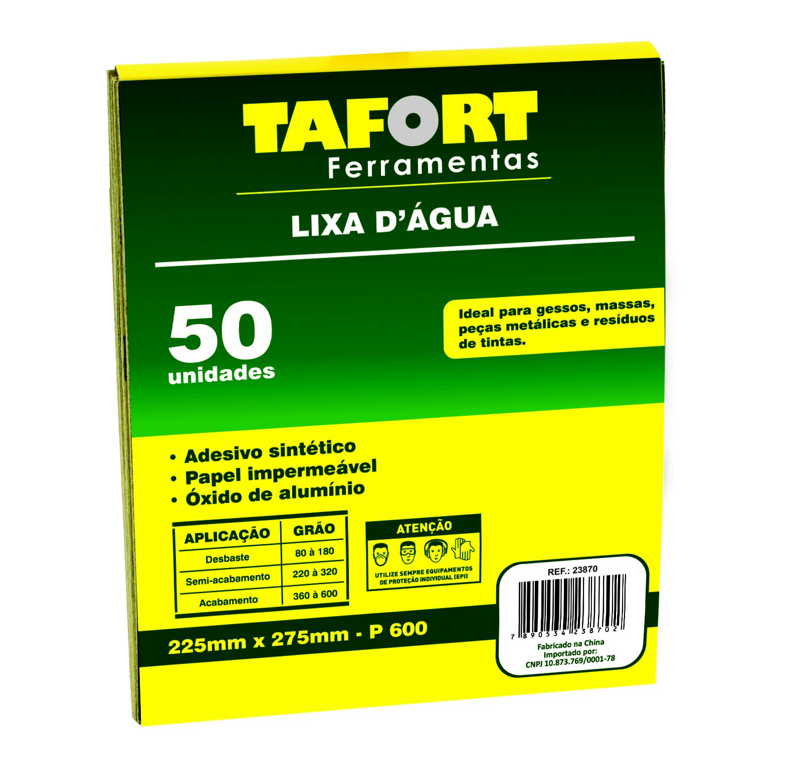 Esta lixa d’água é fabricada com materiais de alta qualidade, projetada especificamente para lixamento úmido em diferentes materiais. Com sua granulação adequada, ela oferece um desempenho excepcional em remoção de imperfeições, nivelamento e preparação de superfícies para acabamento.