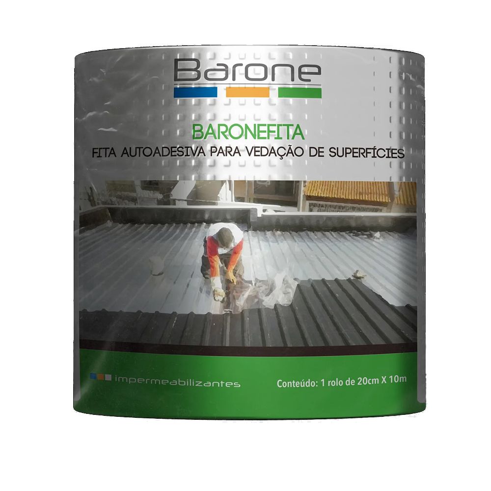 BARONE FITA é uma fita autoadesiva flexível revestida com alumínio, asfalto e aditivos especiais, indicada para vedação de áreas internas, externas e detalhes construtivos.