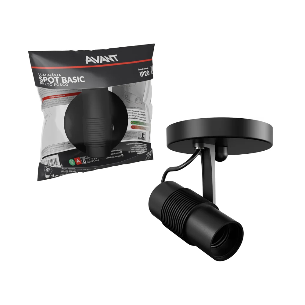 Spot De Sobrepor Basic P/ 1 Lâmpada E27 Preto Fosco - AVANT