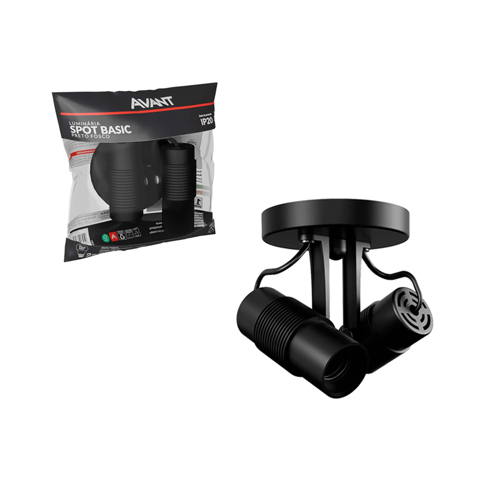 Spot De Sobrepor Basic P/ 2 Lâmpadas E27 Preto Fosco - AVANT