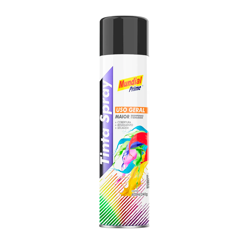 Tinta Spray Uso Geral Preto Semi Brilho 400ml - MUNDIAL PRIME